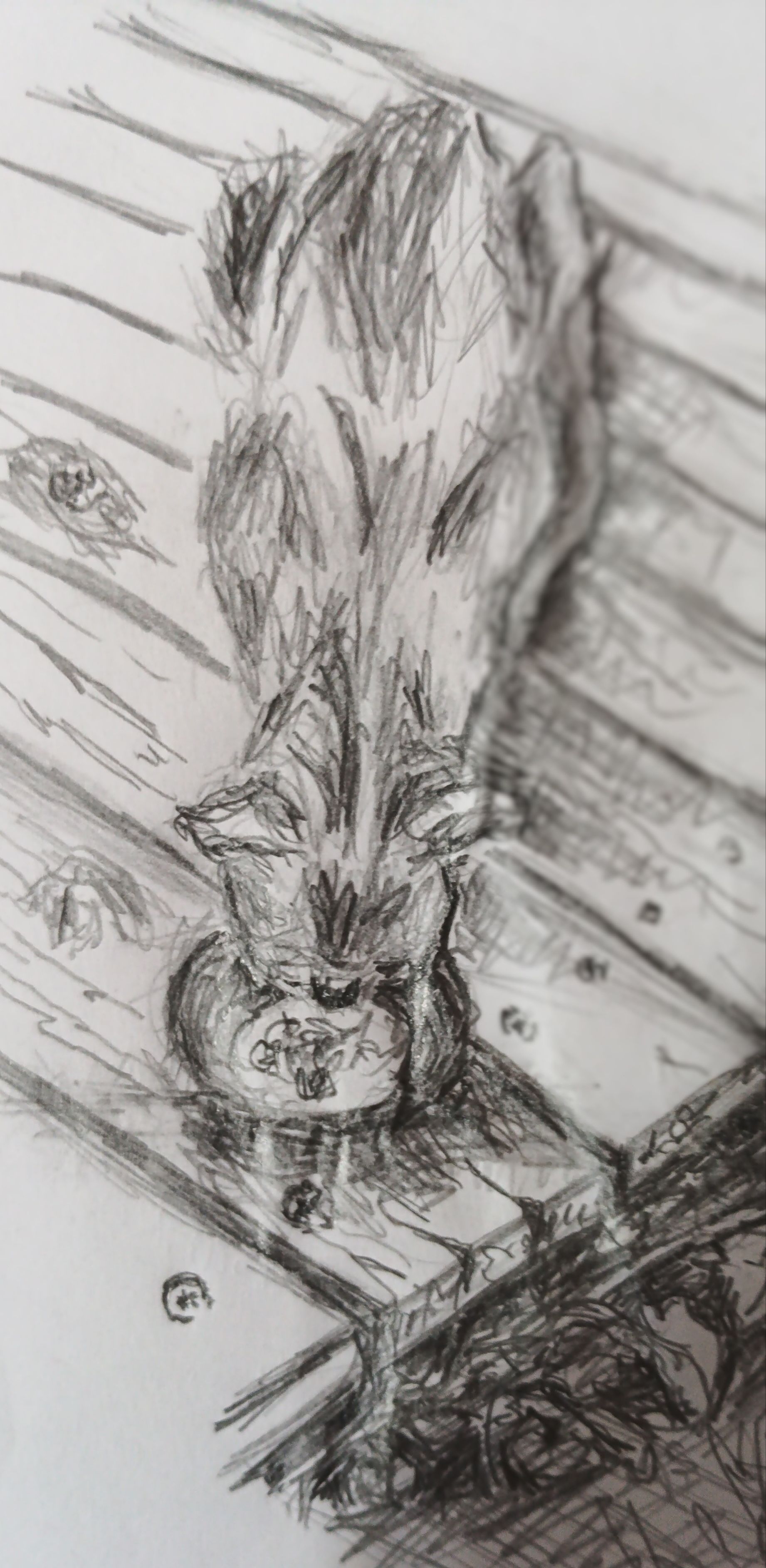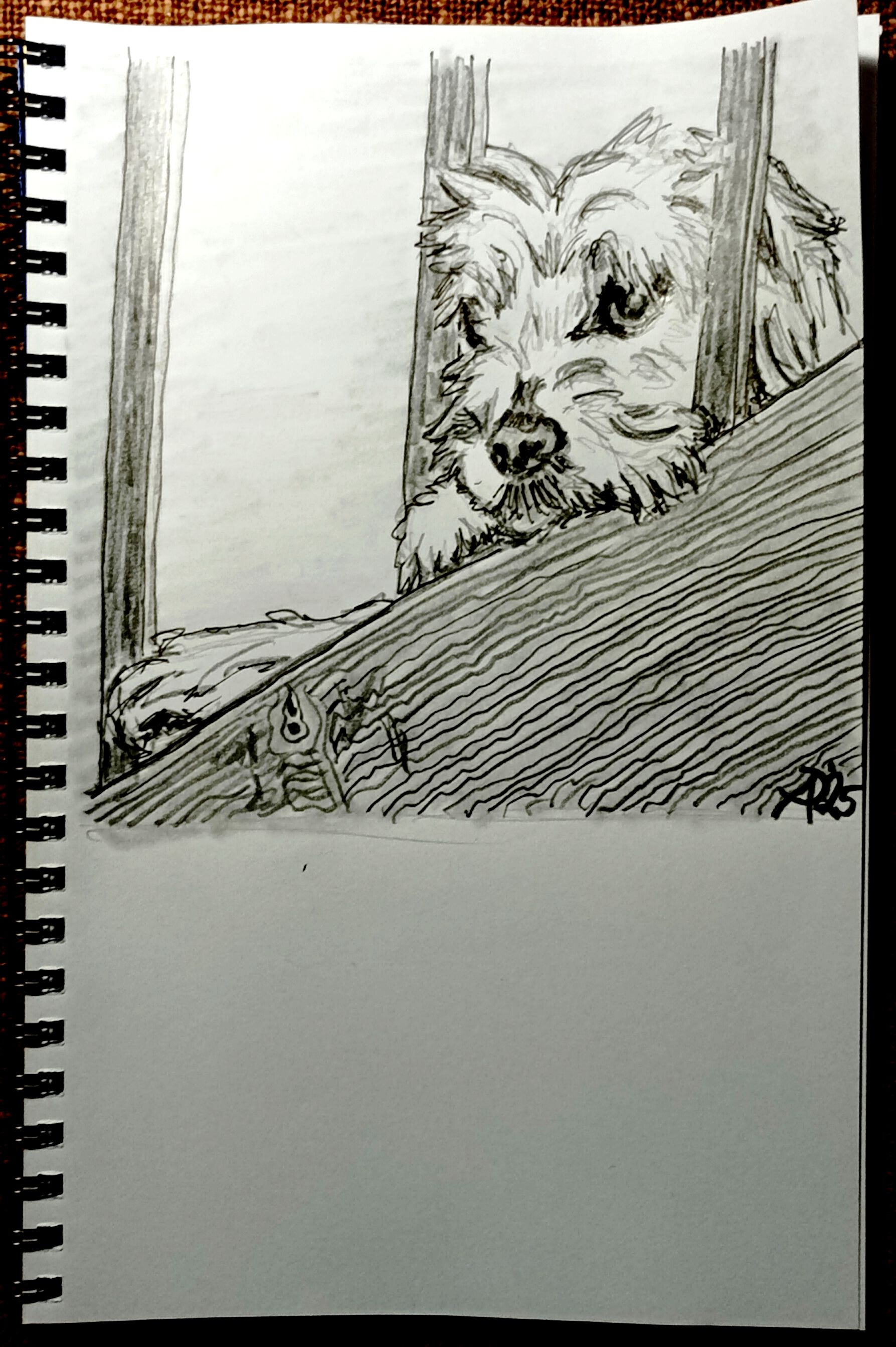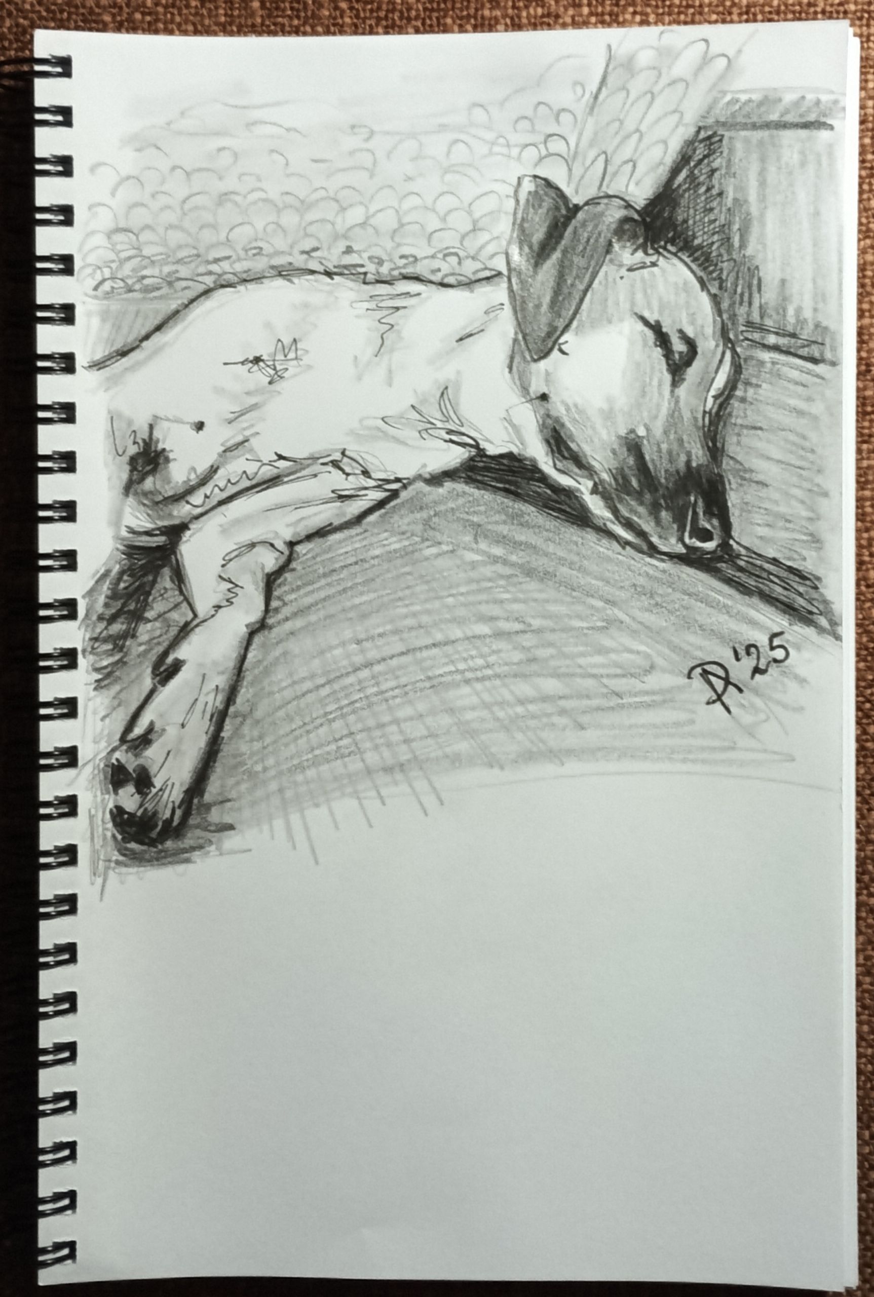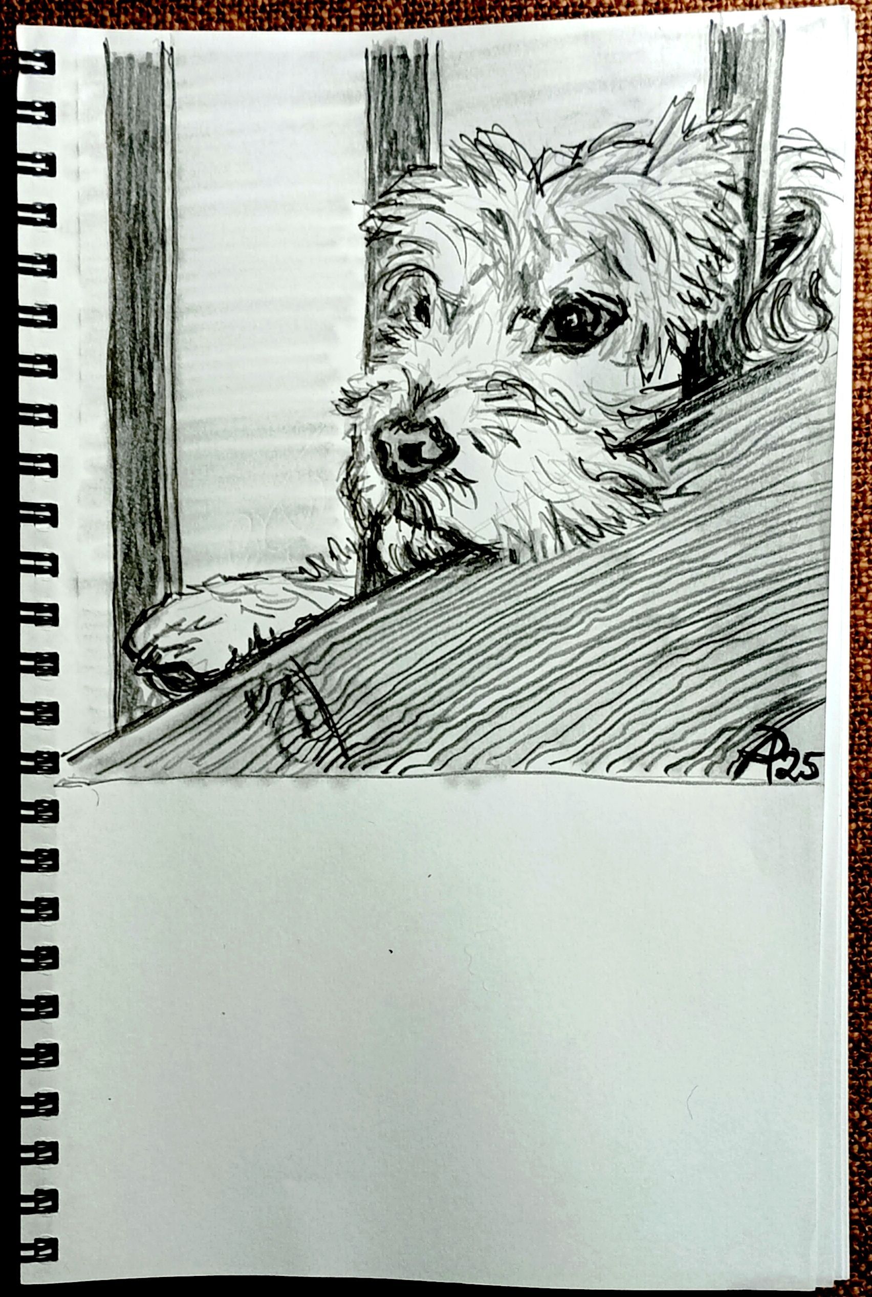 Eines meiner Lieblingsmodelle ist unsere liebe, verspielte Mischlingshündin Bella, die gerne bei mir im Atelier liegt und mir zusieht.